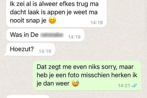 WhatsApp-gesprek met kettingrokende overprikkelde buurvrouw wordt ineens een beetje grimmig