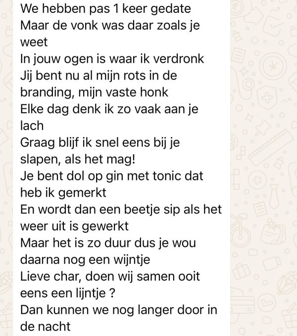 Een gedicht is een literaire tekst waarin gevoelens gedachten of ideeën op een creatieve en vaak ritmische manier worden uitgedrukt. Het maakt gebruik van taalspel beeldspraak en soms rijm om betekenis en sfeer over te brengen. Gedichten kunnen kort of lang zijn en verschillende vormen hebben. Ze worden gelezen of voorgedragen en laten ruimte voor interpretatie waardoor lezers er hun eigen betekenis aan kunnen geven.